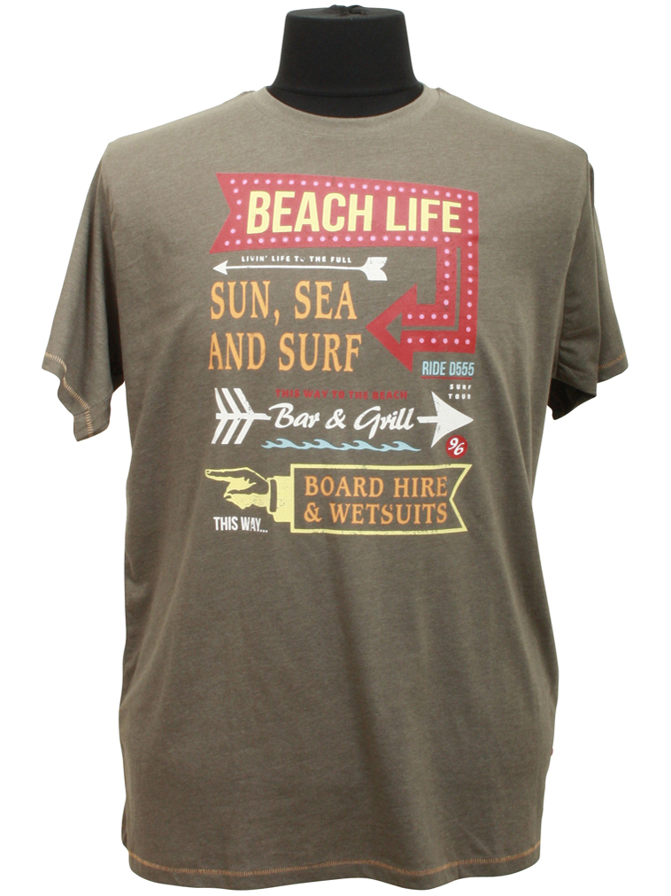 Beach Life Print T-Shirt (Oliven) 1